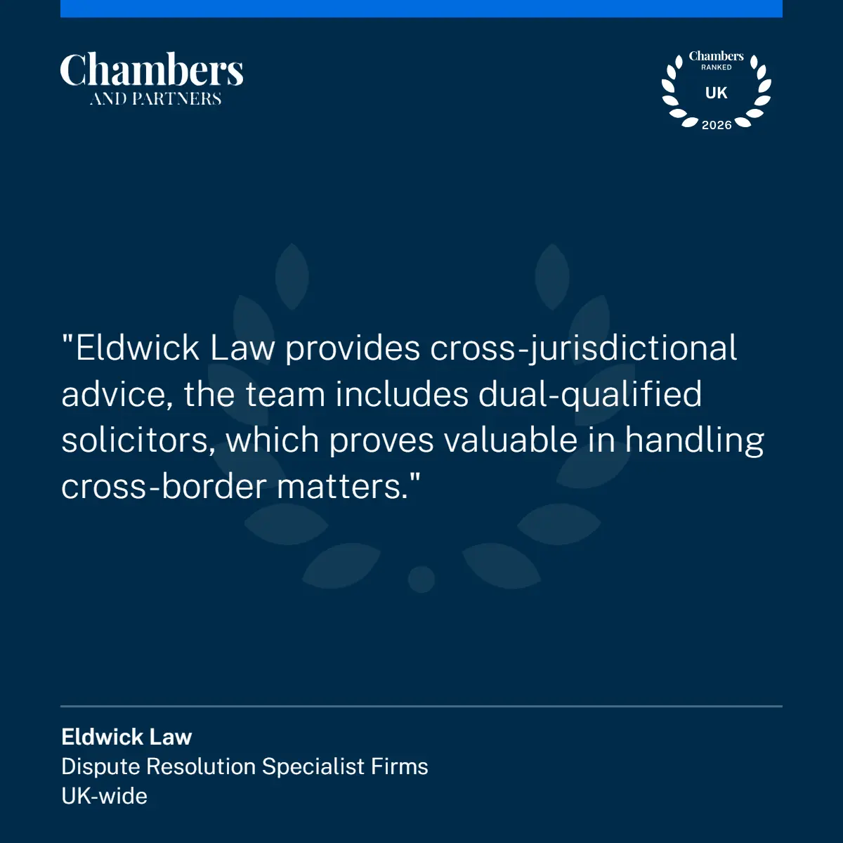 We are honoured to have been recognised by Chambers and Partners as a leading Dispute Resolution Specialist Firm, a category which highlights the UK’s foremost independent and conflict-free boutique practices dedicated to complex disputes and focused on delivering exceptional results in litigation, arbitration, and investigations.